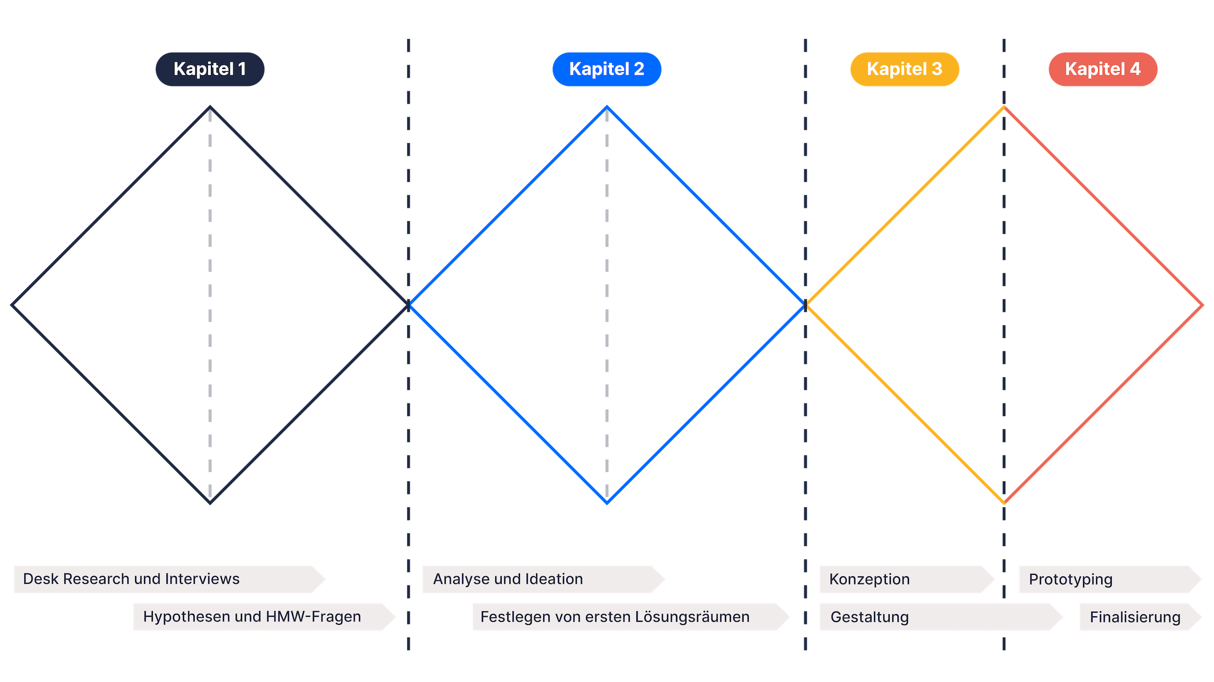 Durch unsere theoretische und angewandte Recherche konnten wir wichtige Erkenntnisse gewinnen, die uns beim Beantworten unserer Forschungsfrage weiterbrachten. Durch das Aufstellen von Hypothesen und anschließenden “How Might We”-Fragen (HMW-Fragen) wurde der Grundstein für das weitere methodische Vorgehen gelegt.